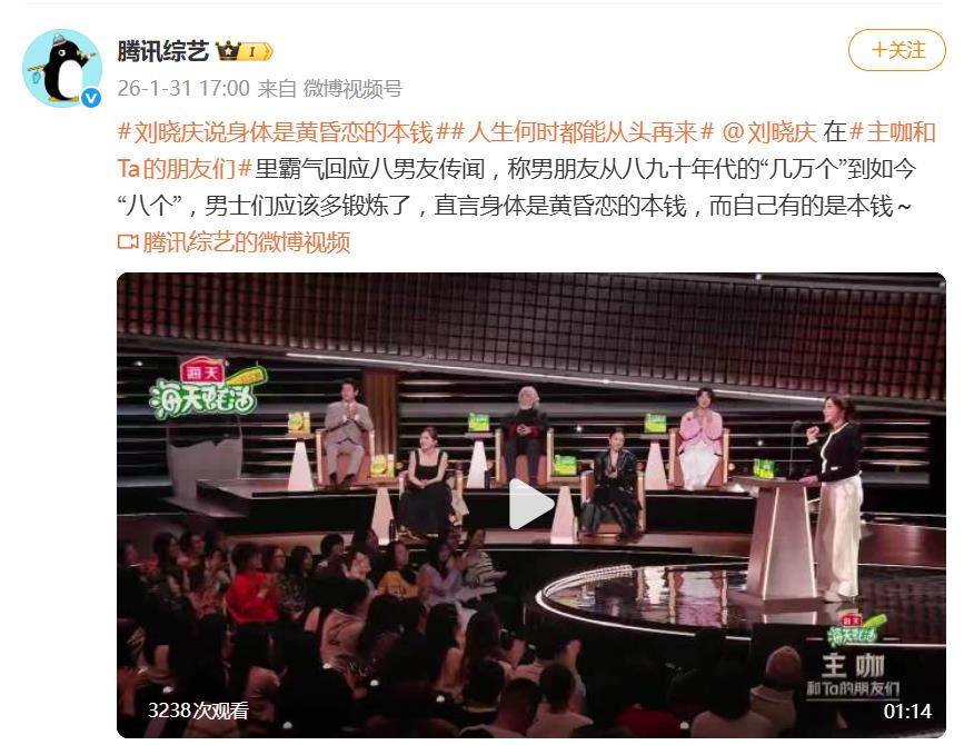紧接着,她话锋一转,将话题引向更深层:“男士们应该多锻炼了。”并掷地有声地总结:“身体才是黄昏恋的本钱。”末了还不忘自信补上一句:“而我自己,有的是本钱。”全程不带一丝火气,却尽显女王格局,用自嘲与劝告替代了无谓的辩驳。